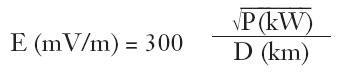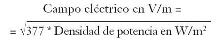 Si en lugar de utilizar la intensidad de campo en V/m quisiéramos hablar de densidad de potencia en W/m2, sólo tendríamos que considerar la relación:
