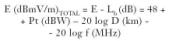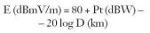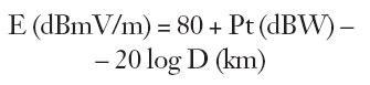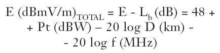 Es más conveniente trabajar en decibelios (dB), ya que entonces el problema se trans-forma en una suma y resta de valores, con lo que se simplifican los cálculos. Entonces la expresión del campo queda: