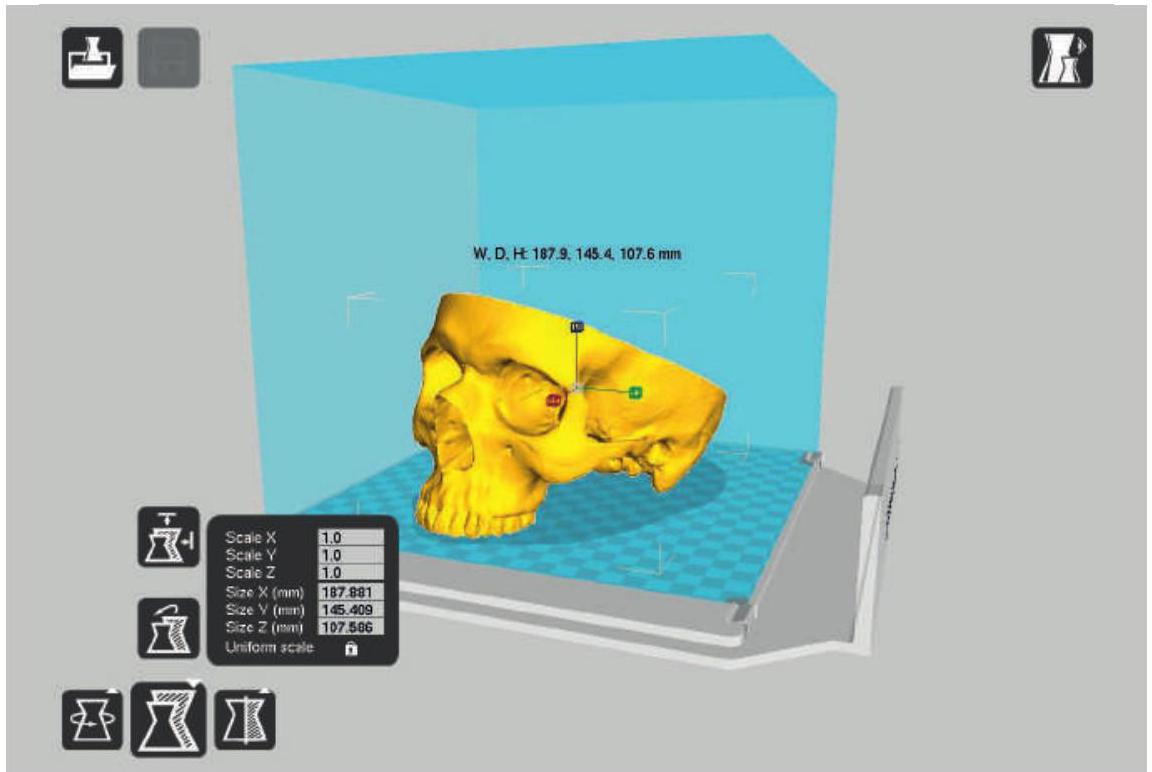 Mediante softwares como Cura (fig. 7) o PrusaSlicer, entre otros, se preparan los archivos STL (Standard Tessellation Language) para uso médico profesional.