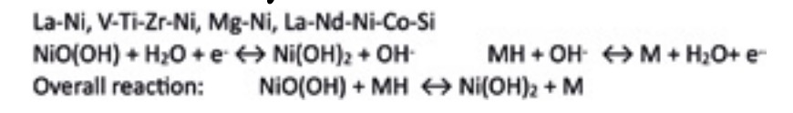 – Ni-metalhydride, NiMH batteries; potassium hydroxide electrolyte; metal hydride anodes of complex stoichiometry, for example: