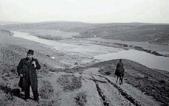 Figura 3. En primer plano, Federico Cantero Villamil y, a fondo, la presa con su embalse