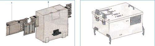 La caja de derivación dispone de unas pinzas que se enchufan en las pletinas de la canalización. En el interior de la caja se instalan los fusibles para proteger eléctricamente el cable de la acometida y la acometida que alimenta el punto de con-sumo se atornilla a los bornes de conexión existentes en el interior de la caja.