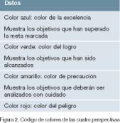 La herramienta es el panel de control de mandos de nuestra empresa, mostrando los resultados que estamos consiguiendo en las cuatro perspectivas siguiendo un código de colores, que se indica en la figura 2.