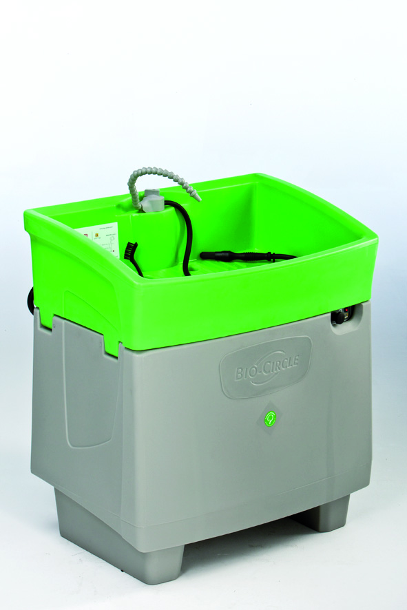 Los productos de las máquinas limpiadoras convencionales pueden desprender un fuerte olor y ser perjudiciales para el medio ambiente. En su lugar, el líquido del Mewa bio-circle contiene microorganismos naturales que degradan biológicamente las grasas y los aceites, y que permiten una capacidad de limpieza constante y a largo plazo. Y así cumple con los requisitos legales y contribuye a la seguridad laboral de los empleados. Esta solución óptima está disponible en dos versiones diferentes. El Mewa bio-circle maxi es potente y robusto. Destaca por su fácil manejo y por su gran capacidad de carga, de hasta 220 kg. Además, su gran superficie de trabajo (880 x 580 mm), permite el espacio suficiente para piezas voluminosas, que pueden limpiarse con una manguera larga.
