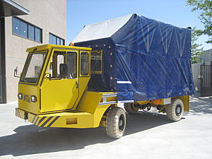 Esta empresa también suministra un carretón autopropulsado eléctrico de 30 toneladas para el manejo de bobinas. Está equipado con toldo corredizo para tener cubiertas las bobinas de acero. Es un vehículo ligero, sin ruido ni contaminación, equipado de moderna cabina y con ruedas que no dejan huella para no estropear el suelo de la fábrica.