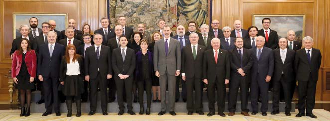 Su Majestad el Rey recibió en audiencia, el 21 de enero, a los presidentes y presidentas de las corporaciones colegiales de Unión Profesional que, con motivo del 40 aniversario de la Constitución, agradecieron a Don Felipe el hacer posible la estabilidad social y desarrollo democrático en el que se han podido consolidar los colegios profesionales como instituciones recogidas en la Carta Magna, y que son garantes de la buena práctica profesional en base al interés general. Asimismo, hicieron especial hincapié en la deontología y la formación continuada como esencia de las corporaciones colegiales, y en trasladar que los intereses de las profesiones son los intereses de la ciudadanía.
