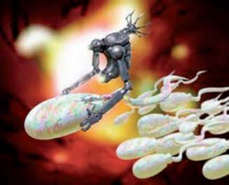 Hoy en día se plantea el uso de nanomáquinas capaces de realizar tareas que eran difíciles de imaginar. Estos nanobots se utilizarían como cazadores de células (figura 10) o de virus y bacterias (Pamies, 2008).
