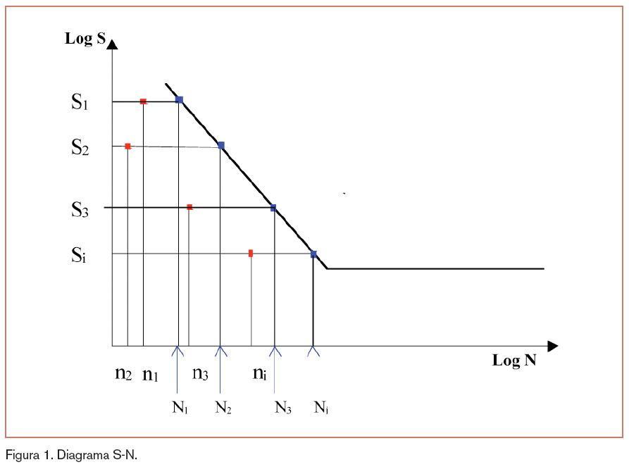 El fallo operando bajo un estado de car-gas de amplitud S1, se produce cuando se alcanzan N1 ciclos. Si el n.º de ciclos operando bajo ese estado de cargas es n1 < N1, no se producirá el fallo sino una “fracción de daño” D1.