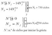 Debemos aplicar (21) hasta que sea iniciada una grieta crítica y después aplicar (22) hasta que se preduce el fallo.