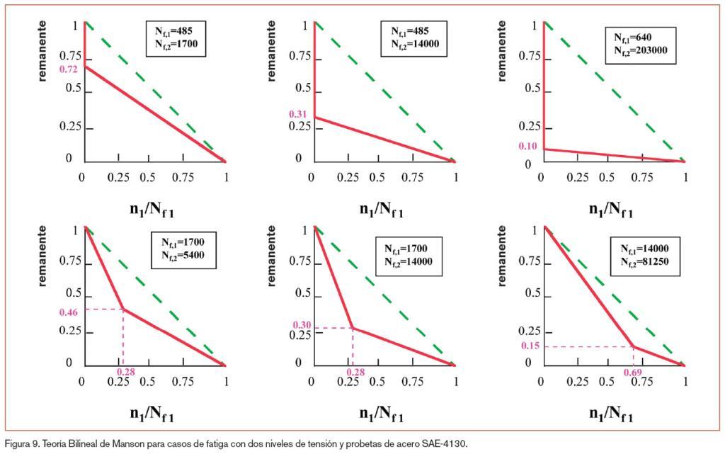 El uso de esta regla bilineal de daño parece dar buenos resultados con las pruebas llevadas a cabo con dos niveles de tensión y con varios materiales.