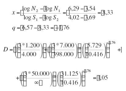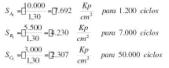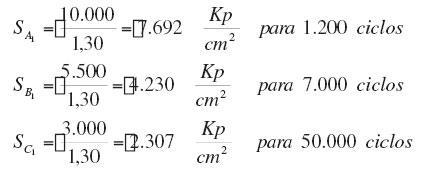 Observamos que para el nivel mas alto de tensiones (10.416 Kp/cm2) del espectro, la curva S-N del material nos la da Nf = 4.000 > 730 ciclos, por lo que empleamos las 1ras ecuaciones. Idénticamente para los otros dos niveles de carga (tabla 6).