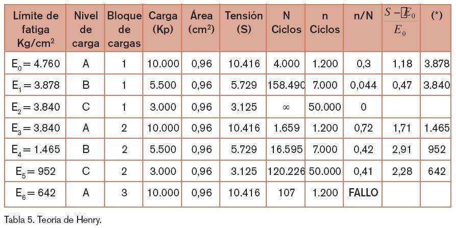 Una modificación usual de la Teoría de Henry implica que pasen todas las curvas S-N a través de (Su, para 1 ciclo) y conectando este punto con el valor E obtenido en (9) para 106 ciclos, por una línea recta en escala semilogarítmica (S-logN) para obtener la curva S-N completa a cada nivel de daño.