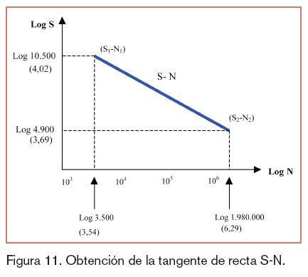 El valor de “x” lo debemos sacar por la tangente de la recta S-N en ejes logarítmicos.(Figura 11)