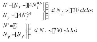 Nr : n.º de ciclos remanentes hasta el fallo a tensiones de amplitud S
