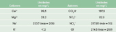 El resto de parámetros físico-químicos de los que se posee información analítica son: