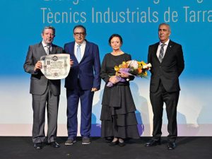 Distinción profesional: entrega de la Insignia de Oro de la UAITIE En el marco de los actos conmemorativos del Centenario de la profesión en Tarragona, la UAITIE otorgó su máxima distinción honorífica, la Insignia de Oro, al ingeniero Santiago Crivillé, en reconocimiento a su excepcional trayectoria profesional, su implicación institucional y su compromiso con la ingeniería técnica industrial.