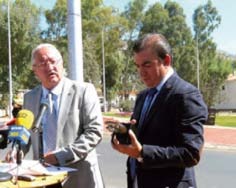 Como muestra de agradecimiento, el presidente del COITI, José Carlos Pardo, entregó tres réplicas del monolito ubicado en Puertollano: una, al propio alcalde; otra, a Antonio Rodríguez, diputado provincial, y una última, al representante del Colegio de Ingenieros Técnicos Industriales de Cáceres.
