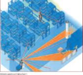 - – Necesita siempre ver, por lo menos, tres de las balizas para determinar su posición. Esto hace que la baliza del vehículo y las balizas fijas situadas en las columnas, tengan que estar siempre despejadas, sin ningún elemento que interrumpa el rayo láser que sirve para determinar la posición. Puede ser un problema si se manejan cargas de alturas similares a las puertas que deben de atravesar, o si al nivel de las balizas hay mucho tráfico de vehículos o personas.