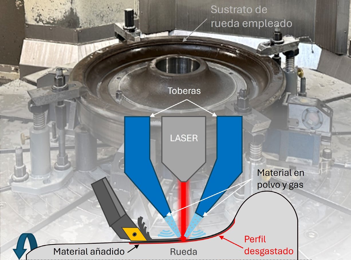 Además, estudios previos han demostrado que crear revestimientos a partir de materiales en polvo mejora las características técnicas y la resistencia del material base. Por eso, mediante la MAM sería posible conseguir un aumento de la resistencia a desgaste y RCF, principales causas de fallo, y, por tanto, prolongar la vida útil de ruedas y carriles a través de diversos materiales en polvo.