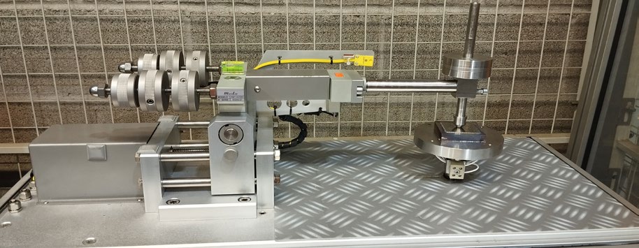 Las pruebas tribológicas se realizaron en un dispositivo ball-on-disk (Fig. 5), siguiendo los procedimientos dictados en la norma (ASTM G99, 2017). Esta máquina aplica una fuerza normal sobre un indentador inmóvil, presionándolo sobre un plato sometido a rotación, por lo que se produce, de esta manera, un deslizamiento entre ambas partes. Aunque no hay rodadura como podría esperarse de un contacto rueda-carril, este escenario es válido para situaciones de contacto con la pestaña, las cuales se caracterizan por elevados seudodeslizamientos y condiciones saturadas del contacto. Como indentador se empleó una bola de 6 mm de diámetro, fabricada en WC 94/6 Co (módulo elástico de 600 GPa y coeficiente de Poisson de 0.22) debido a su elevada dureza, 1.550 HV. Con estos parámetros nominales y mediante de la teoría de Hertz (el problema tangencial no se tiene en cuenta para este cálculo), se calcula la máxima presión de contacto.