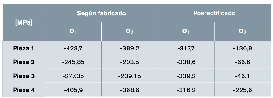Tabla 6. Tensiones residuales en piezas fabricadas
