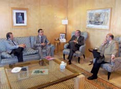 El decano del Colegio, Francisco J. Reyna Martín, acompañado del decano del Colegio Oficial de Ingenieros Industriales de Andalucía Occidental, Aurelio Azaña, y del decano del Colegio de Ingenieros de Caminos, Canales y Puertos, demarcación Andalucía, Abraham Carrascosa, mantuvieron antes del verano sendas reuniones con el presidente de la Diputación Provincial de Sevilla, Fernando Rodríguez Villalobos, y con Alicia Martínez, miembro del comité ejecutivo autonómico del Partido Popular de Andalucía y parlamentaria por el PP andaluz (a esta última reunión también asistió José Antonio Arvide, presidente del Consejo Andaluz del Colegio de Ingenieros Industriales). A uno y otro se les trasladaron las inquietudes y reivindicaciones de las ingenierías y arquitectura a favor de mantener la obligatoriedad del visado profesional y la oposición colectiva al real decreto que desarrolla legislativamente la Ley Ómnibus y que prevé en su texto la desaparición del visado profesional.