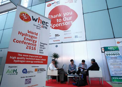 No es baladí, pues, el que haya sido Aragón la tierra elegida para acoger este Congreso, región pionera en el desarrollo de proyectos relacionados con esta fuente energética, como también se puso de manifiesto en los días de celebración del Congreso. La Fundación para las Nuevas Tecnologías del Hidrógeno en Aragón, formada por 70 patronos, en su mayoría de carácter privado, tuvo un espacio propio en el pabellón español del WHEC. Allí daba a conocer sus principales proyectos, como la tercera revisión del Plan Director del Hidrógeno en la comunidad, con vigencia para el periodo 2016-2020. También en diversas intervenciones se hizo alusión al proyecto que coordinará Aragón y desarrollará junto con Francia y Andorra, para la creación de un corredor de hidrógeno con la instalación de 11 hidrogeneras y 16 vehículos piloto, financiado dentro del Programa Interreg (POCTEFA).